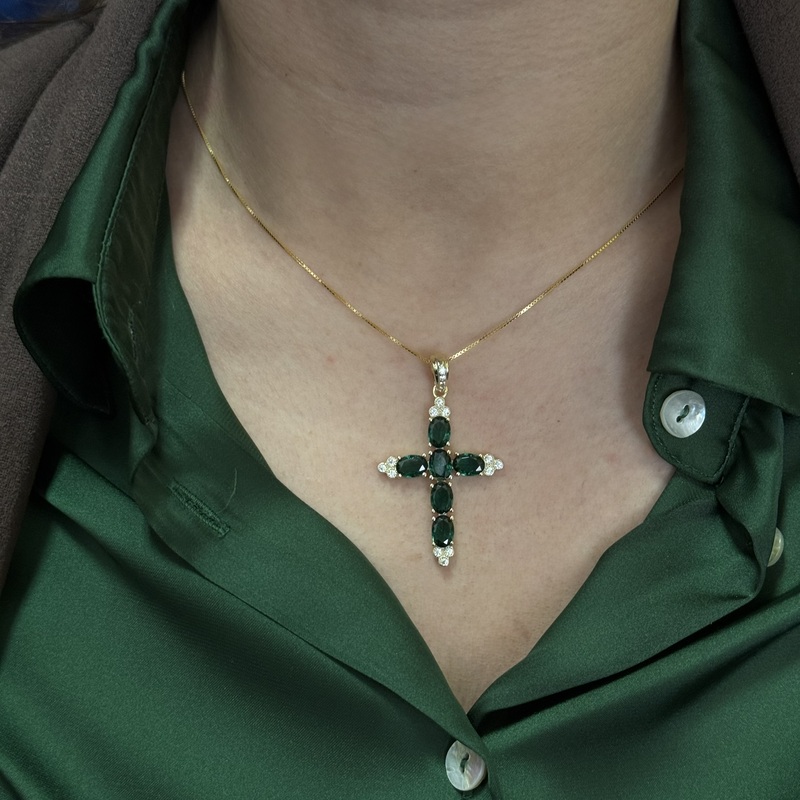 Collona da donna in argento 925 con pendente a forma di croce impreziosita da zirconi. Misura croce 4 cm. Chiusura a moschettone regolabile