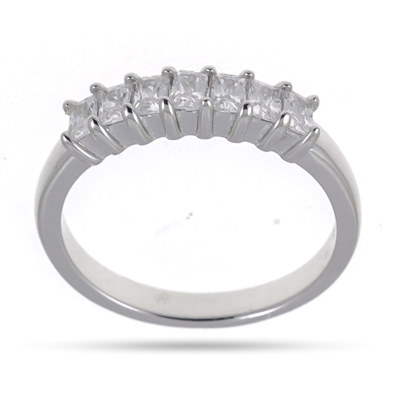 Anello da donna in argento 925 impreziosito da 7 baguette. Misure regolabili