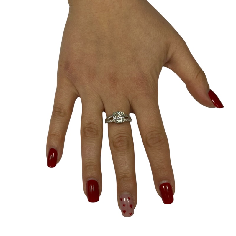 Anello da donna in argento 925 con moissanite centrale da 9,9 mm e moissaniti su doppi gambi