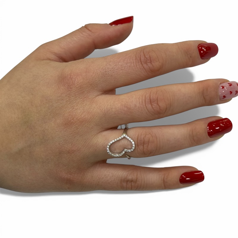 Anello cuore regolabile da donna in argento 925 imprziosito da zirconi.