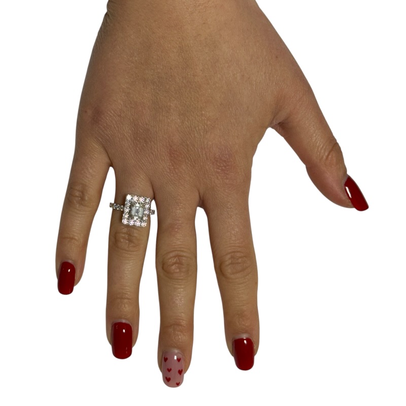 Anello da donna in argento 925 con moissanitea forma di baguette da 6*8mm