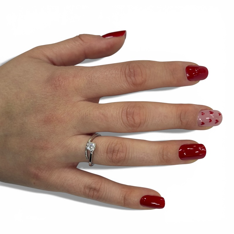 Anelllo da donna in argento 925 con zircone da 4 mm. Misura 14 regolabile.