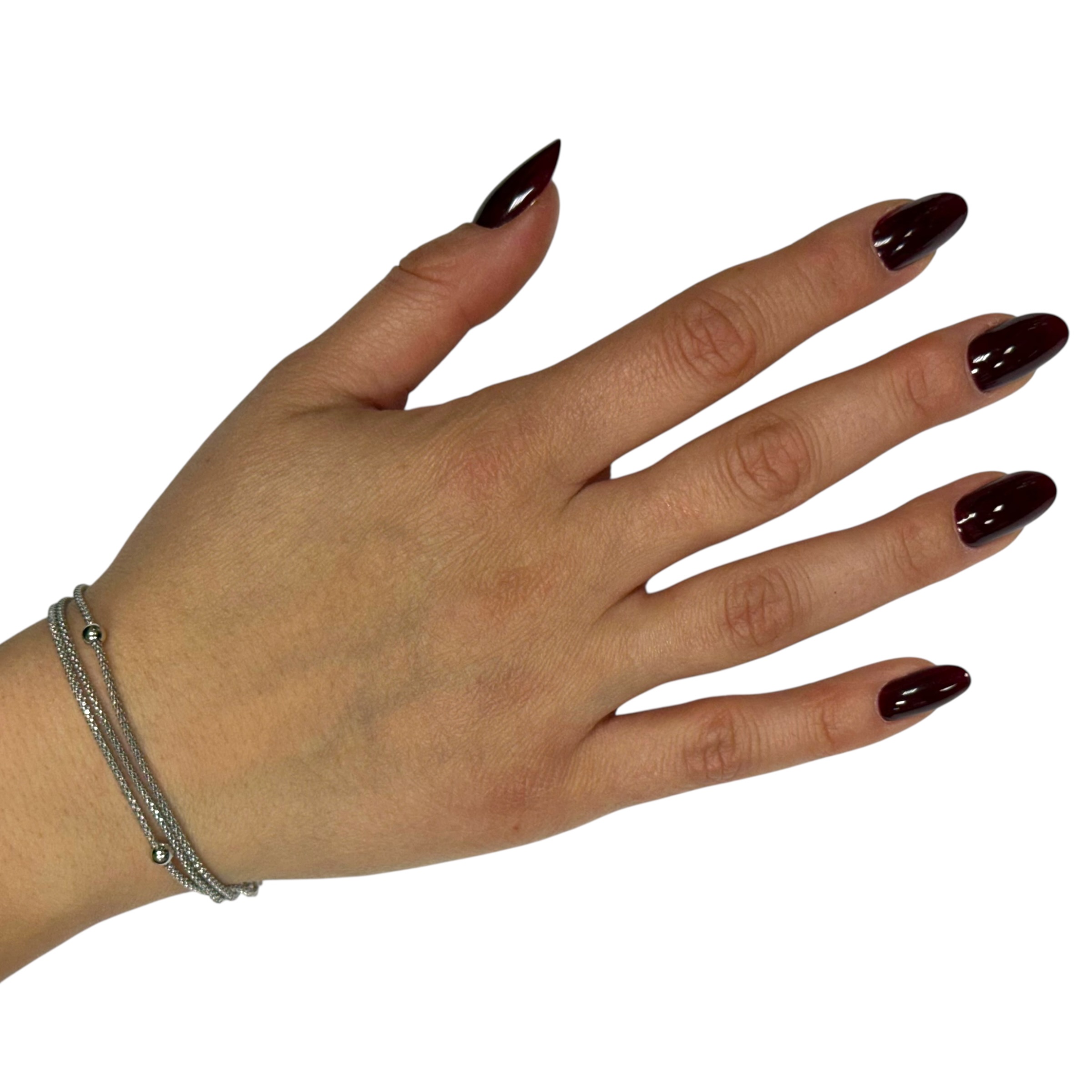 Bracciale da donna in argento 925 composto da 3 catene modello Funetta e 3 sfere lisce, chiusura a molla regolabile. Misura 17 cm + 3 cm di allungo.