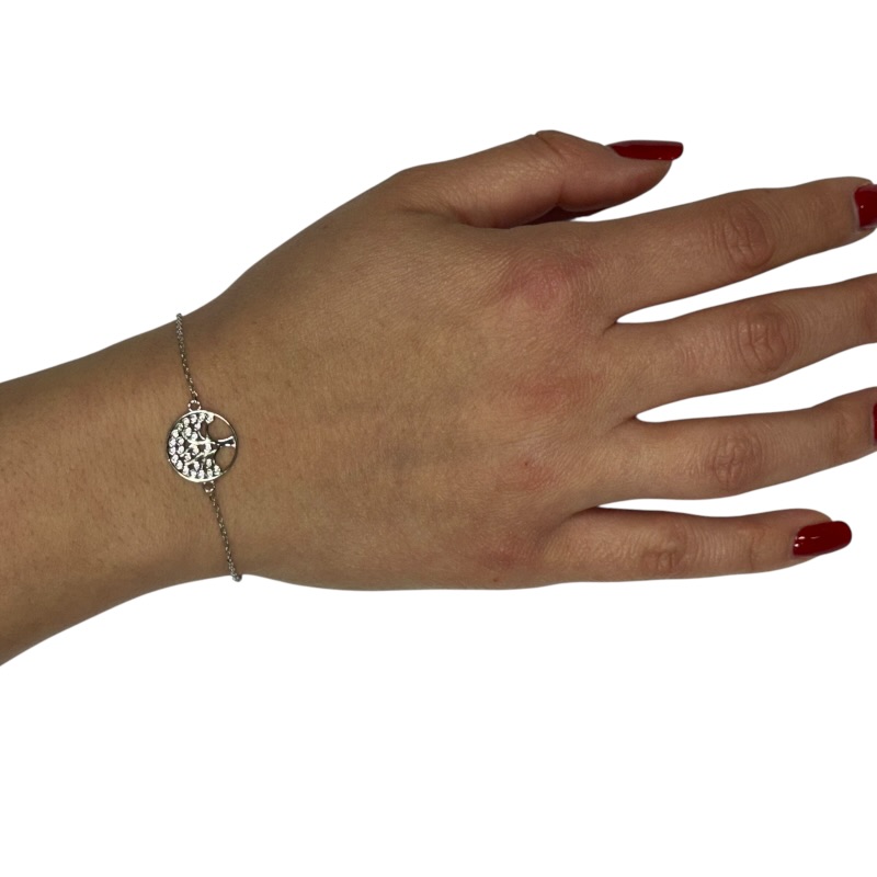 Bracciale in argento 925 con albero della vita centrale impreziosito da zirconi. Chiusura a moschettone regolabile
