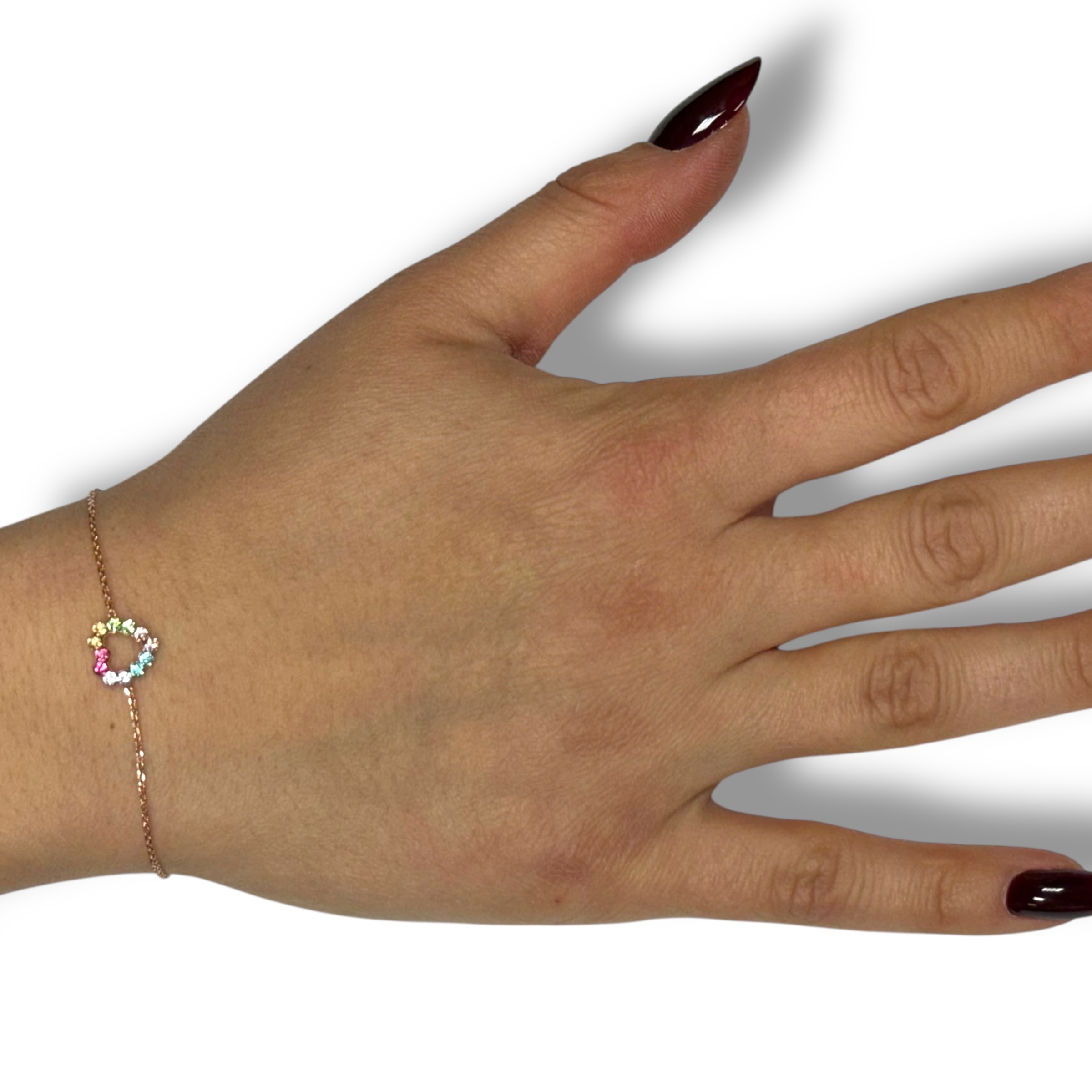 Bracciale da donna in argento 925 con catenina maglia veneziana e cuoricino centrale impreziosito da strass multicolor, chiusura a molla regolabile. Misura 17 cm + 3 cm di allungo