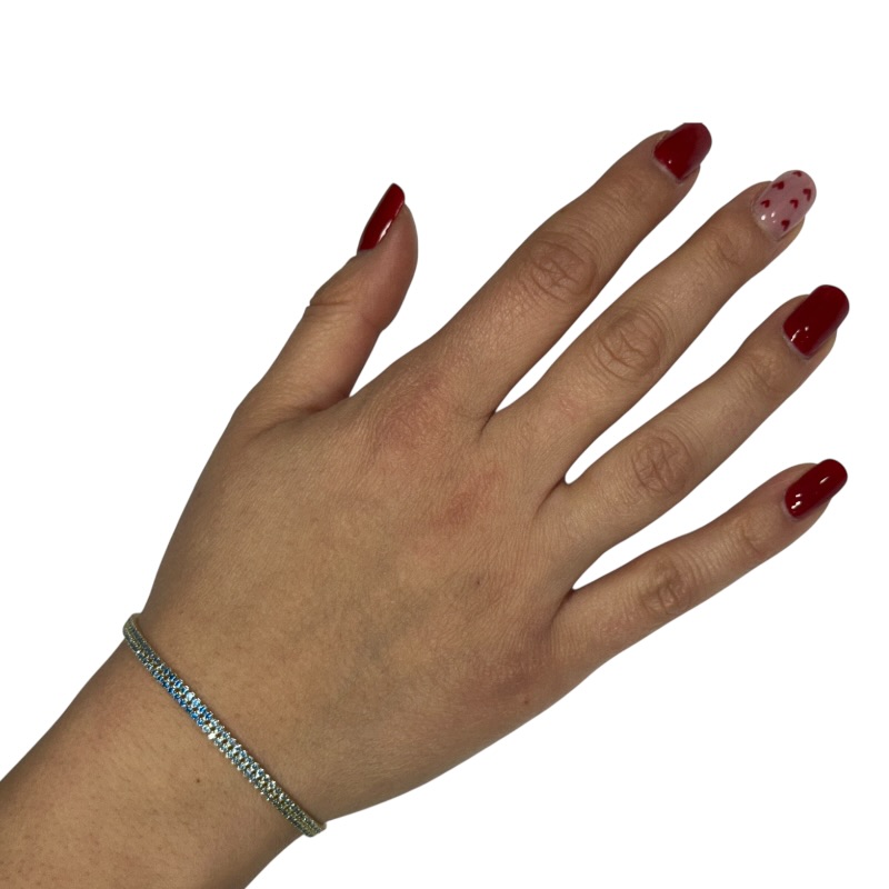 Bracciale da donna in argento 925 con doppo filo di zirconi. Lunghezza 17 cm chiusura a scattino.