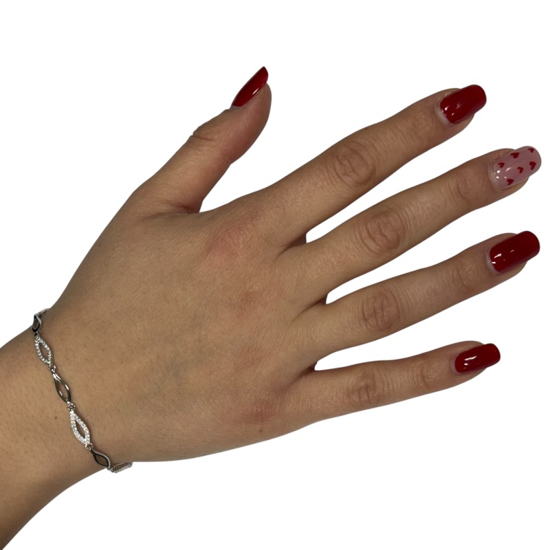 Bracciale da donna in argento 925 fantasy impreziosito da zirconi. Dimensioni 17 cm + 3 cm di allungo. Chiusura a moschettone regolbile.