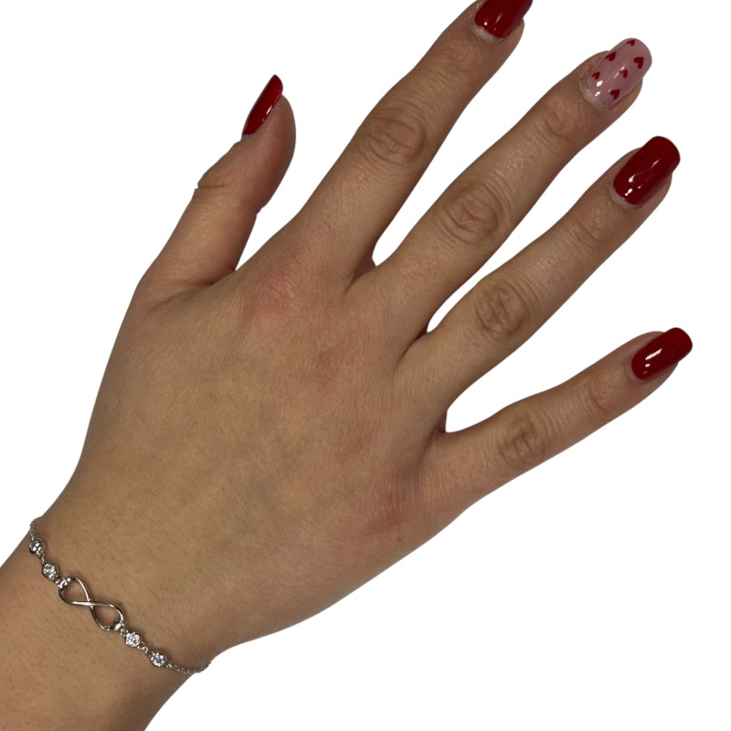 Bracciale da donna in argento 925 , composto infinito centrale e zirconi. Lunghezza 16 cm + 3 cm di allungo. Chiusura a moschettone regolabile