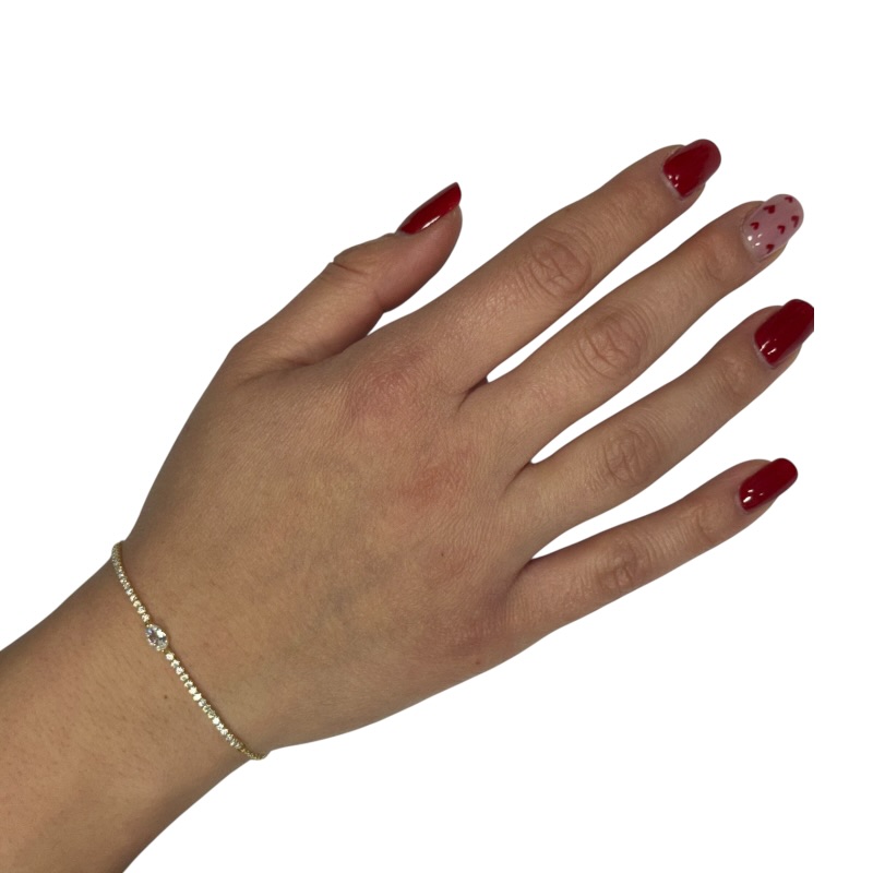 Bracciale da donna in argento 925 con mezzo tennis impreziosito da zircone ovale centrale. Chiusura a moschettone regolabile. Lunghezza 16 cm + 3 cm di allungo