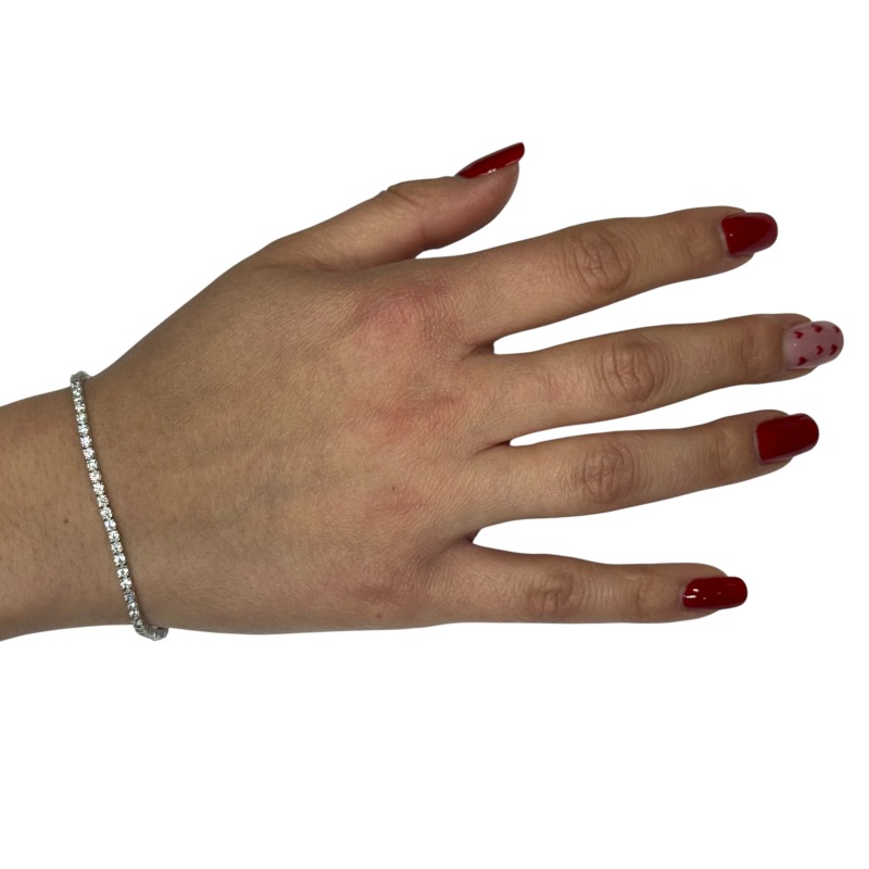 Bracciale da donna in argento 925 modello tennis con zirconi bianchi da 2 mm lunghezza 16 cm .