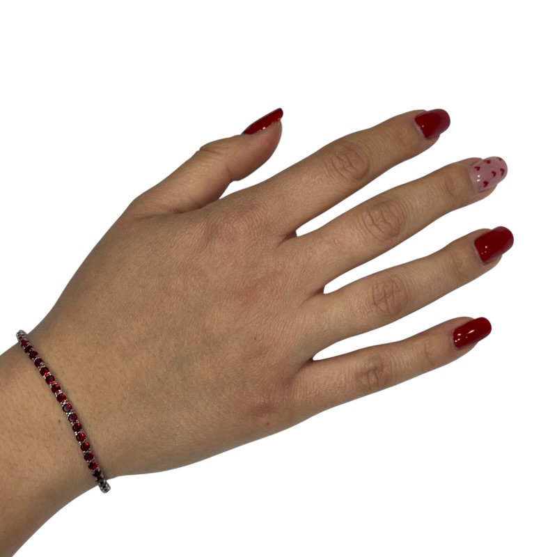 Bracciale da donna in argento 925 modello tennis con zirconi rossi misura 16 cm . Chiusura a cassetto