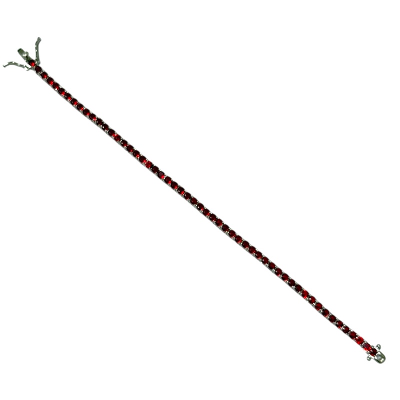 Bracciale in argento 925 modello tennis con zirconi rossi da 3mm, lunghezza 18cm. Chiusura a cassetto