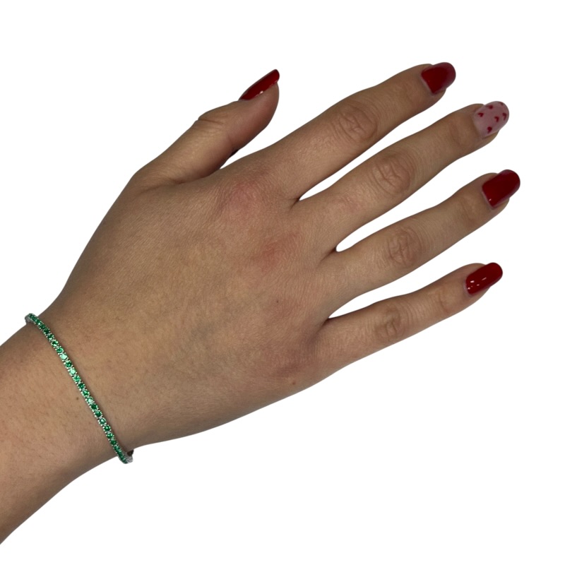 Bracciale tennis verde 3 mm 16 cm