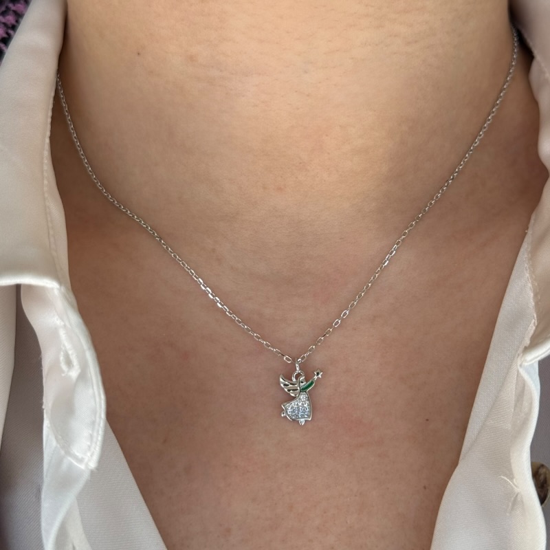Collana da donna in argento 925 con pendente a forma di angioletto zirconato. Lunghezza 42 cm + 3 cm di allungo. Chiusura a moschettone regolabile