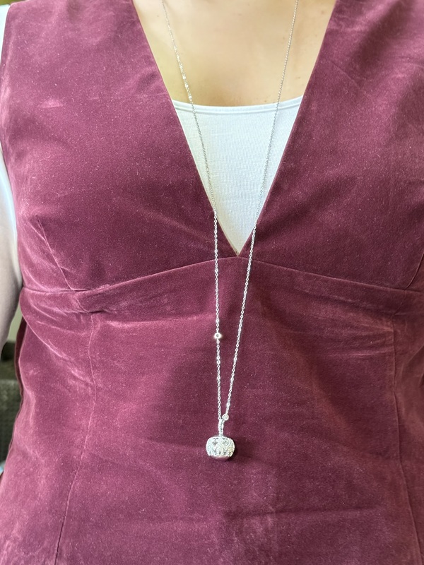 Collana da donna in argento 925 modello chiama angeli con 2 cipollini zirconati sulla catena. Lunghezza 100 cm.