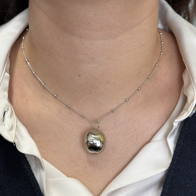 Collana da donna in argendo 925 con catena veneziana alternata con palline, lunga 40 cm + 4,5 cm di allungo e pendente a pallina dal diamtro di 18mm