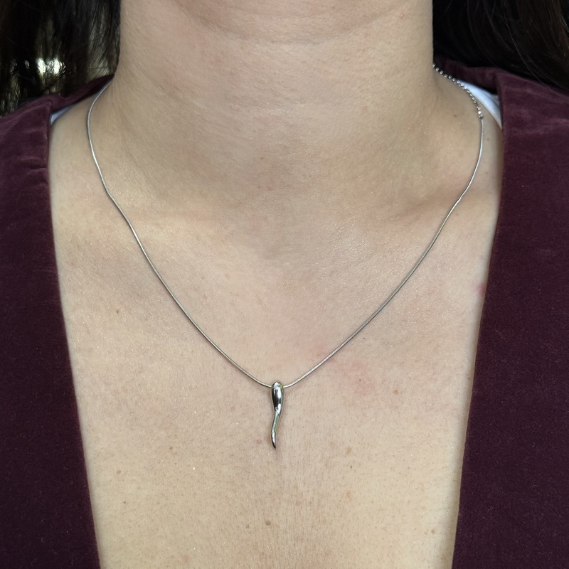 Collana girocollo in argento 925 liscio con corno pendente: Lunghezza 42 cm + 3 cm di allungo