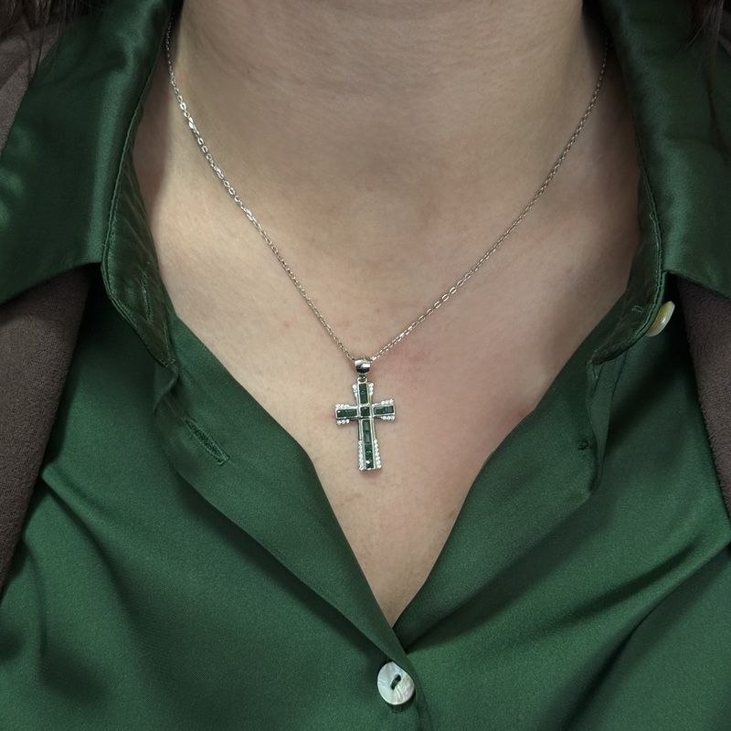 Collana da donna in argento 925 con croce pendente impreziosita da zirconi. Chiusura a moschettone regolabile