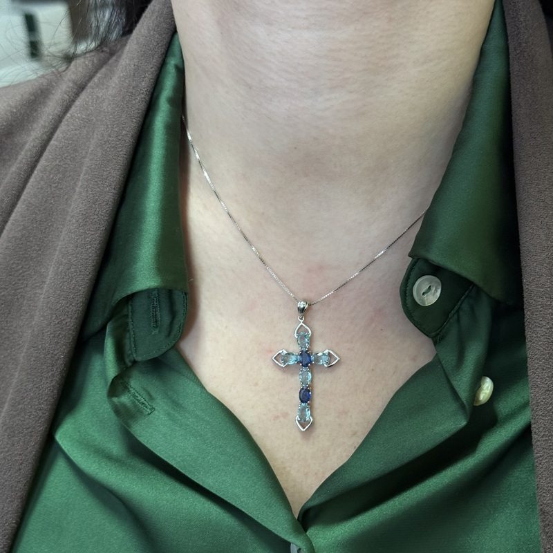 Collana da donna in argento 925 con croce pendente impreziosita da zirconi grande 36,3 mm. Chiusura a moschettone regolabile