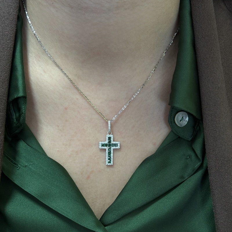 Collana da donna in argento 925 con croce pendente zirconata.