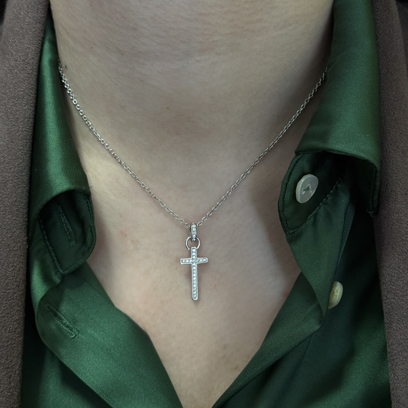 Collana da donna in argento 925 con croce pendente zirconata. Misura 40 cm + 3 cm di allungo