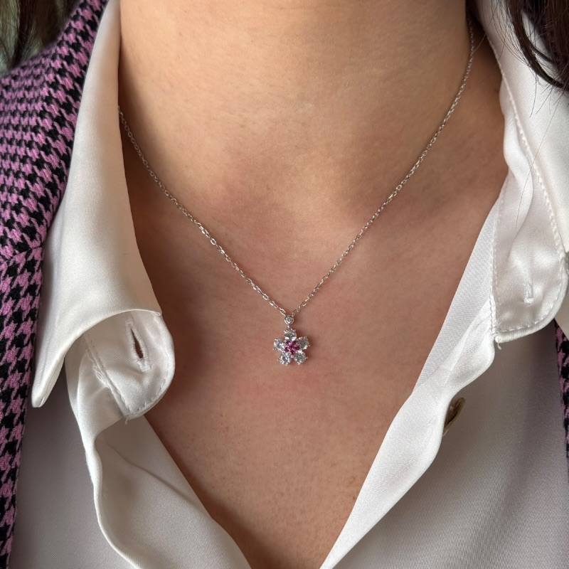 Collana forzatina da donna in argento 925 con fiore pendente zirconato. Lunghezza 40 cm + 5 cm di allungo