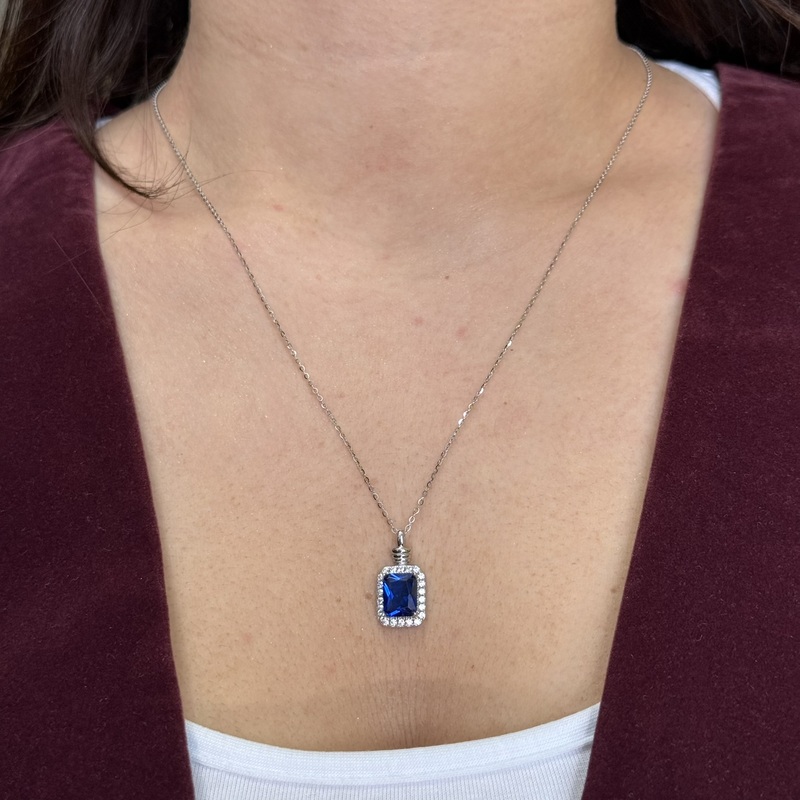 Collana da donna in argento 925 con pendente rettangolare impreziosito da zirconcini. chiusura a moschettone regolabile