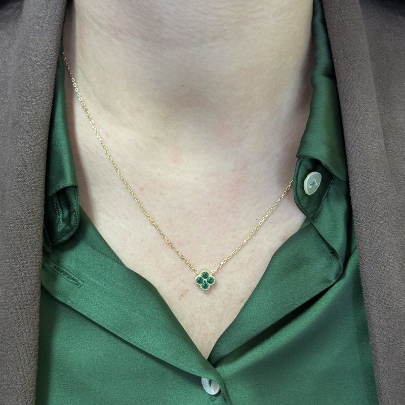 Collana quadrifoglio con zirconi verdi