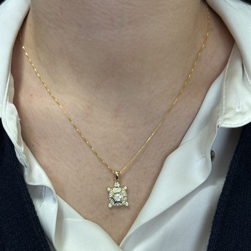 Collana da donna in argento 925 con pendente a forma di tartaruga di terra. Chiusura a moschettone regolabile.