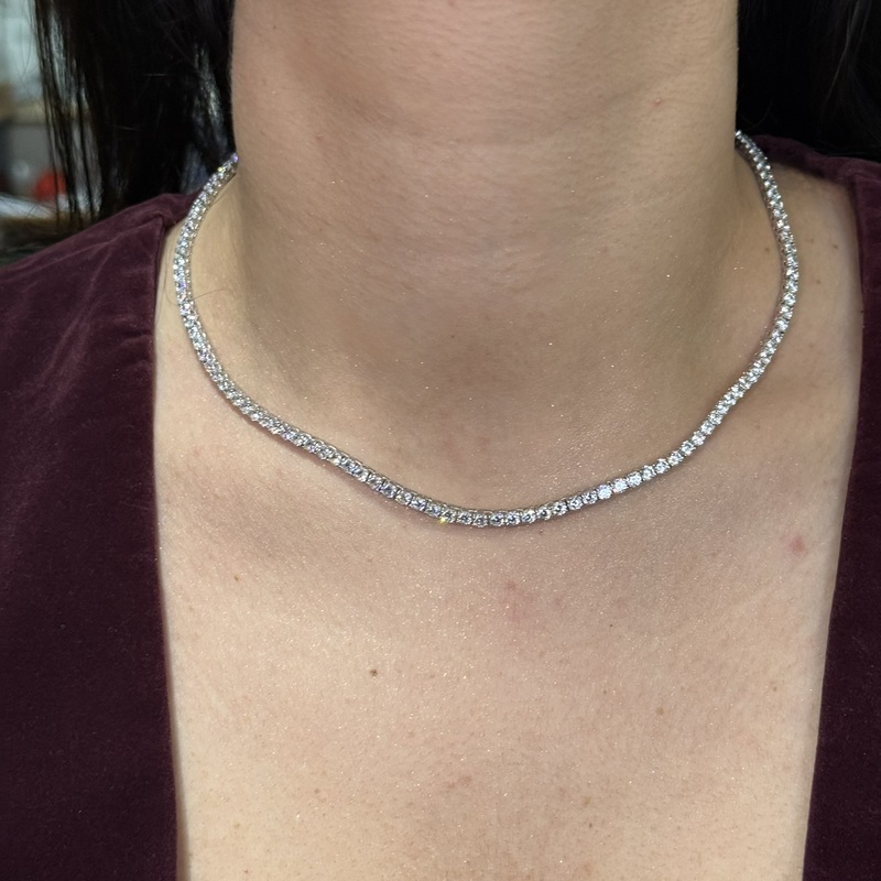 Collana tennis con zirconi bianchi da 3 mm. Lunghezza collana 37 cm + 6 cm di allungo. Chiusura a moschettone regolabile