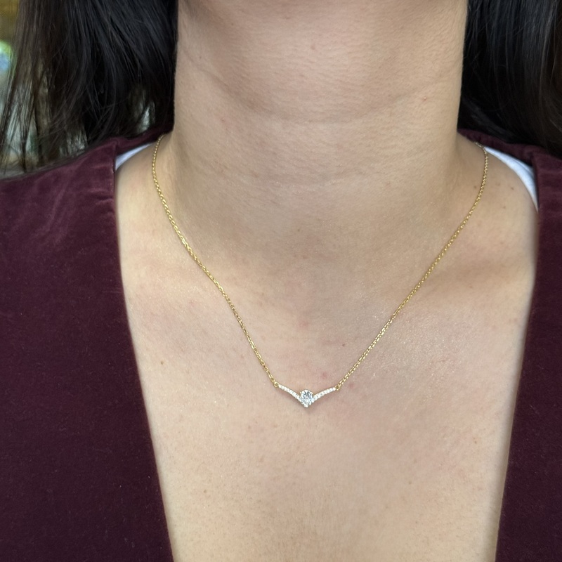 Collana forzatina da donna in argento 925 cono pendente a forma di v zirconata e pietra centrale.
