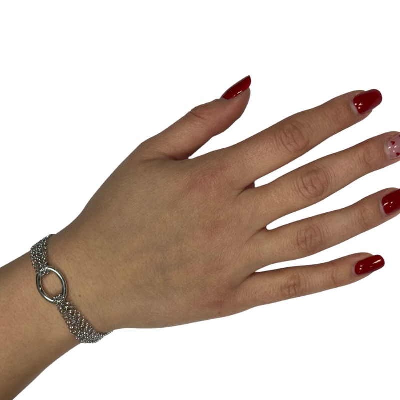 Bracciale da donna in argento 925 , impreziosito da più catene morbide e cerchio ovale centrale. Lunghezza 16 cm + 4 cm di allungo.